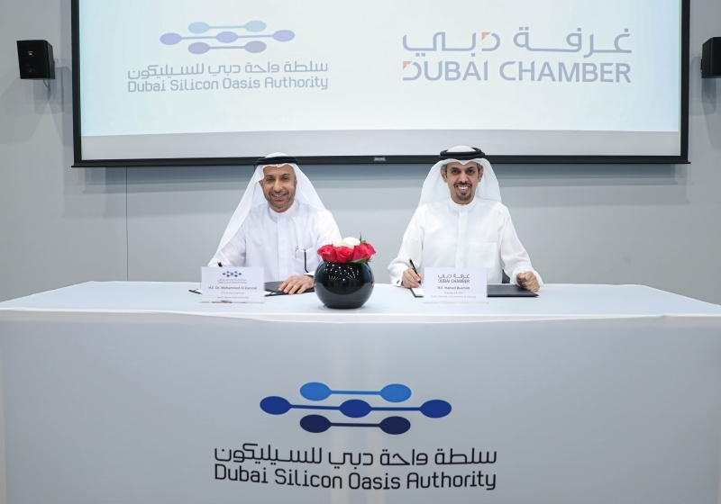 وقّع اتفاقية الشراكة الدكتور محمد الزرعوني نائب الرئيس والرئيس التنفيذي لسلطة واحة دبي للسيليكون، وحمد بوعميم، مدير عام، غرفة دبي في مركز «ديتك» بواحة دبي للسيليكون.