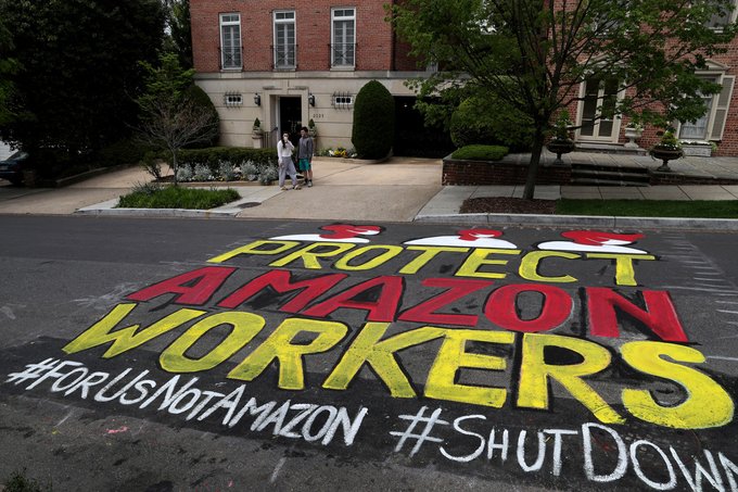 وقال هؤلاء إن الجدارية خطوة من أجل الاحتجاج على الأوضاع الصعبة التي يعاني منها عمال شركة أمازون في ظل تفشي فيروس كورونا.