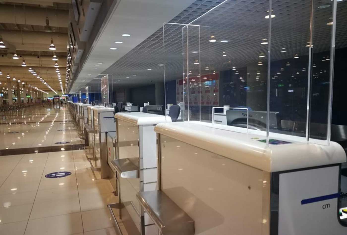 وأظهرت صور حديثة جانبا من الإجراءات الوقائية والاحترازية وأبرزها نقاط خضوع جميع الركاب المغادرين للمسح الحراري ولوحات تشدد على الركاب بارتداء أقنعة الوجه والقفازات والالتزام بقواعد التباعد الجسدي.
