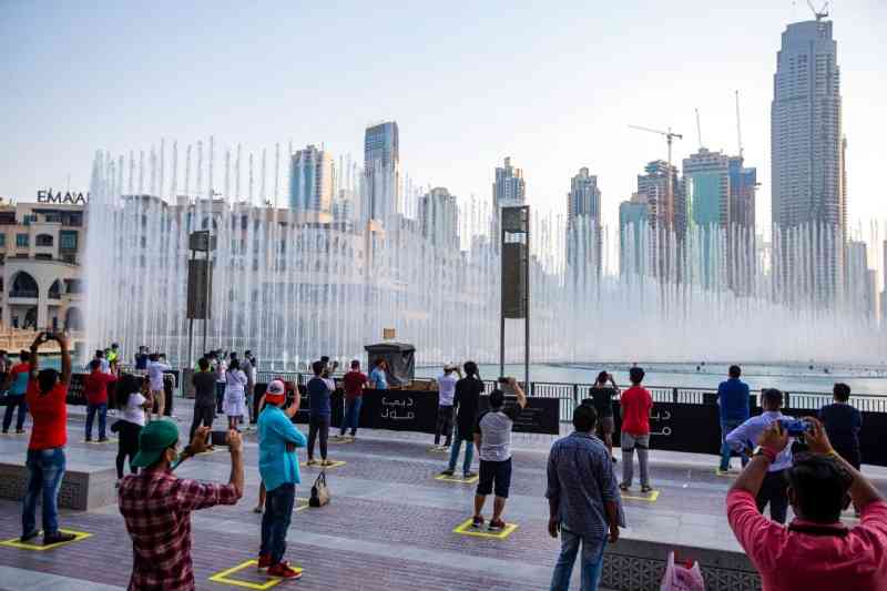 عادت نافورة دبي، أطول نافورة راقصة في العالم، إلى إبهار الزوار مجدداً ،على إيقاع الموسيقى والعروض الساحرة، مع قرارات فتح الاقتصاد مجدداً، معلنةً العودة التدريجية للسياحة الداخلية، إذ بدأ أمس في الساعة السادسة مساءً عرض مائي وموسيقي وضوئي رائع، امتزج بصوت الفنان راشد الماجد وهو يتغنى بجمال دبي بقصيدة «دبي كوكب آخر»، للشاعر الإماراتي أنور المشيري وألحان البحريني أحمد الهرمي.