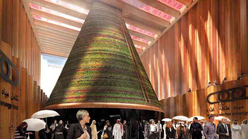ومن الأمور التي سيتفرد بها هذا الجناح، الذي يقع في منطقة الاستدامة، الأمطار الاصطناعية الداخلية التي سيولدها بفضل تكنولوجيا هولندية مبتكرة، تسمى سانغلاسير (SunGlacier)، تستخرج الماء من الهواء وتستخدم الطاقة الشمسية لري المزروعات وإبهار الزوار.