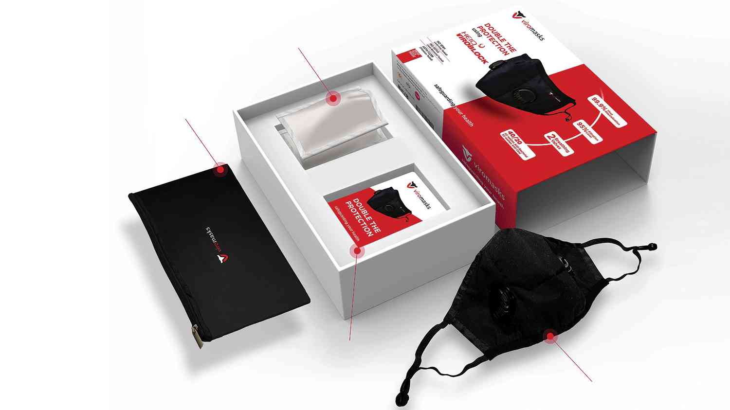 ويتم دعم منتج ڤيروماسكس الإماراتي بتقنية ڤيروبلوك من هاي كيو، وهي الأولى في العالم التي أثبتت فعاليتها في الوقاية بنسبة 99,9% من فيروس سارس-كوف-2 خلال 30 دقيقة. وجاء ذلك بعد الاختبارات التي أجراها معهد دوهرتي بأستراليا.