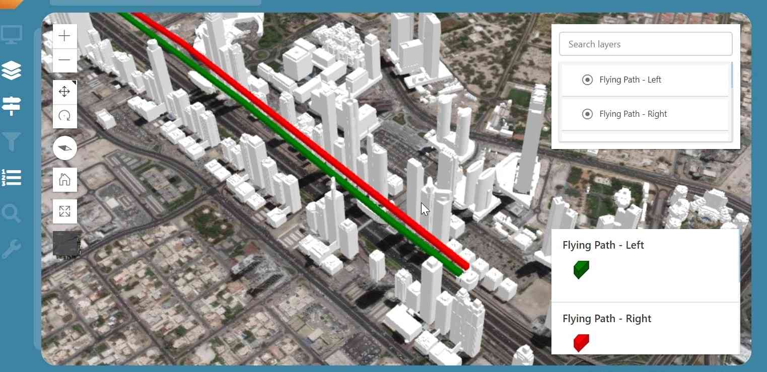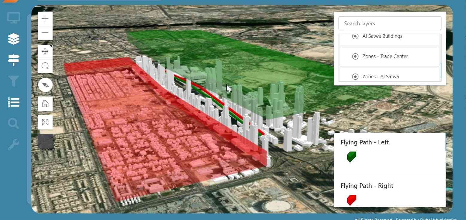 واستعرضت المهندسة مريم عبيد المهيري مدير مركز نظم المعلومات الجغرافية في بلدية دبي نظام المشروع وإمكانياته الواسعة والذي يهدف إلى دعم خطط دبي المستقبلية في مجال التنقل الجوي لخلق بيئة محفزة على الاستثمار في هذا القطاع الهام من خلال إعداد المخطط الرئيسي Master Plan للبنية التحتية لنظام القبة الجوية لسماء دبي والذي يتضمن تحديد مواقع المسارات ومرافق المناولة الأرضية والجوية والمطارات ومحطات الشحن وغيرها بناء على دراسة الاحتياجات السكانية والاقتصادية والمعايير التخطيطية الأخرى والتكامل بين المخططات الرئيسية الأرضية والجوية والتوافق بين الاشتراطات التخطيطية لكل نوع من التخطيط.