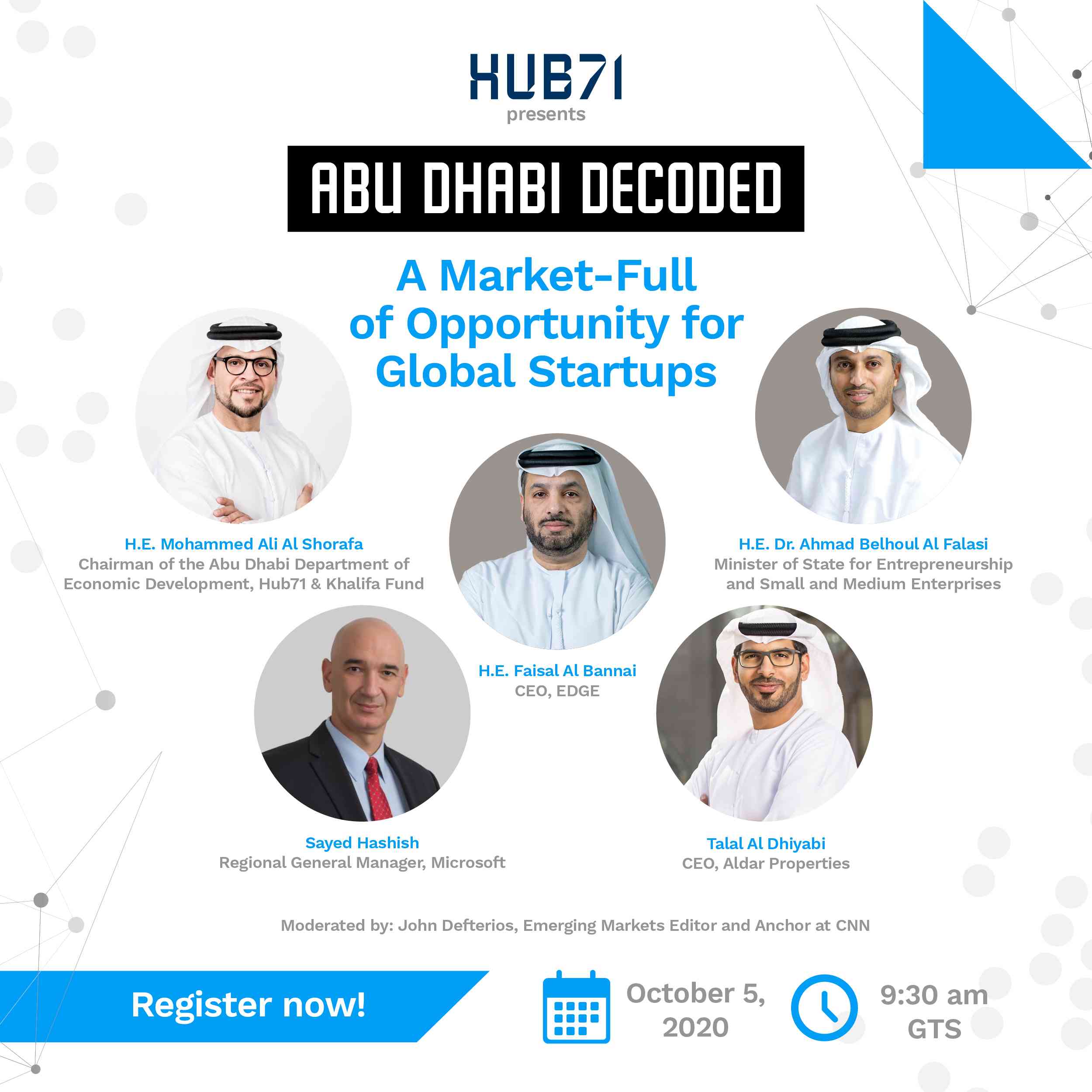 وستشكّل هذه السلسلة الفريدة من الندوات الافتراضية منصة لطرح مجموعة متنوعة من الأفكار ووجهات النظر من قبل كبار المسؤولين في حكومة أبوظبي، وكبار المديرين التنفيذيين للشركات ومؤسسي التكنولوجيا الناجحين، ورؤى أصحاب رأس المال الجرئ. وستشمل الجلسات مناقشات حول المبادرات التي تم إطلاقها لتعزيز منظومة عالمية حيوية للتكنولوجيا وبيئة أعمال مرنة في أبوظبي، مع مراعاة الاعتبارات الرئيسية للشركات الناشئة الطموحة التي تسعى إلى مزيد من النمو في دولة الإمارات العربية المتحدة.