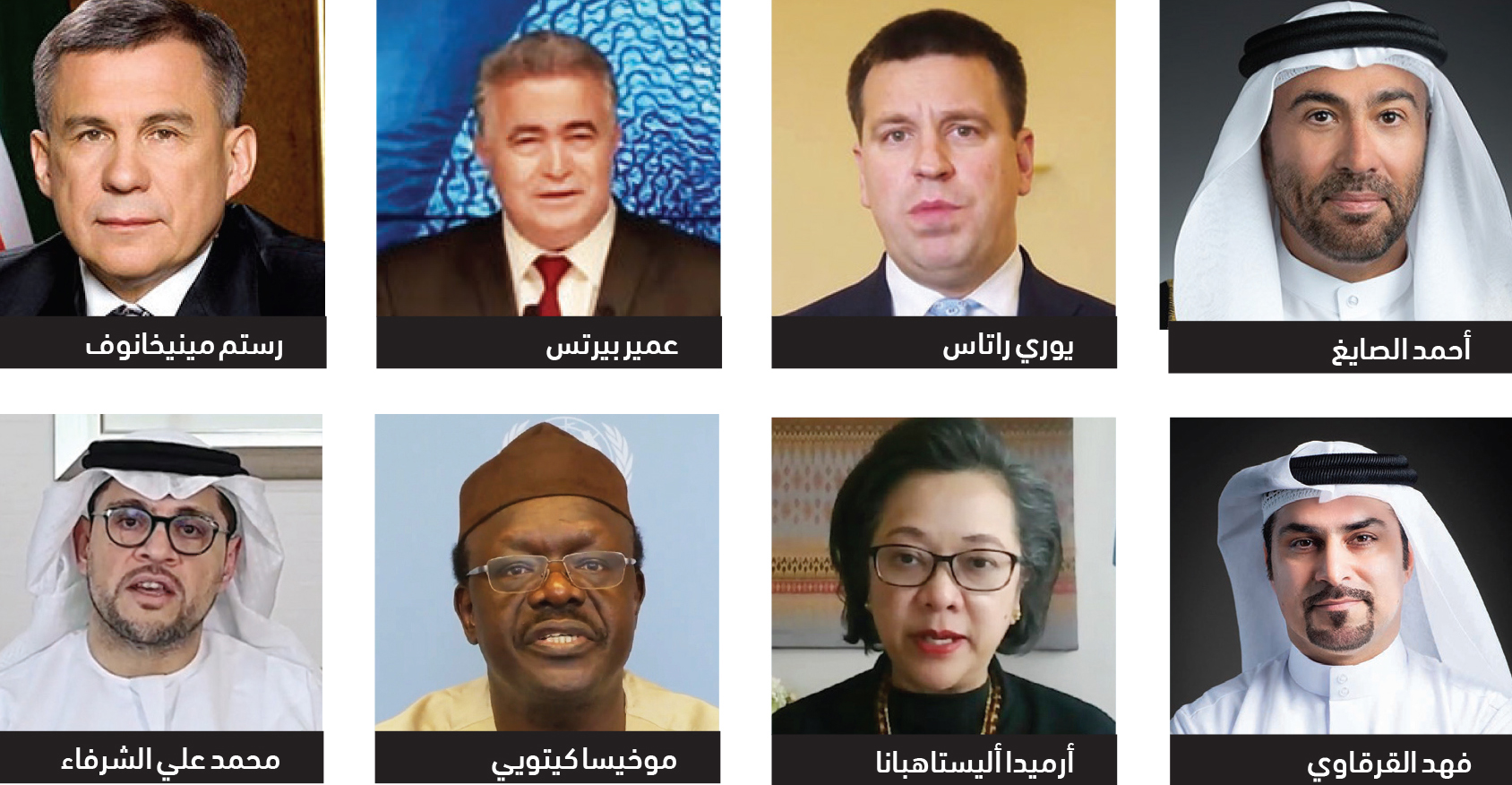 وشهدت الجلسات الحوارية للملتقى الذي تنظمه وزارة الاقتصاد تحت رعاية صاحب السمو الشيخ محمد بن راشد آل مكتوم، نائب رئيس الدولة رئيس مجلس الوزراء حاكم دبي، رعاه الله، مشاركة كبار المسؤولين الحكوميين من مختلف دول العالم ونخبة من قادة الأعمال، وتم مناقشة سبل خلق مستقبل رقمي ومستدام ومرن من أجل معالجة التأثير العالمي لجائحة «كوفيد 19».
