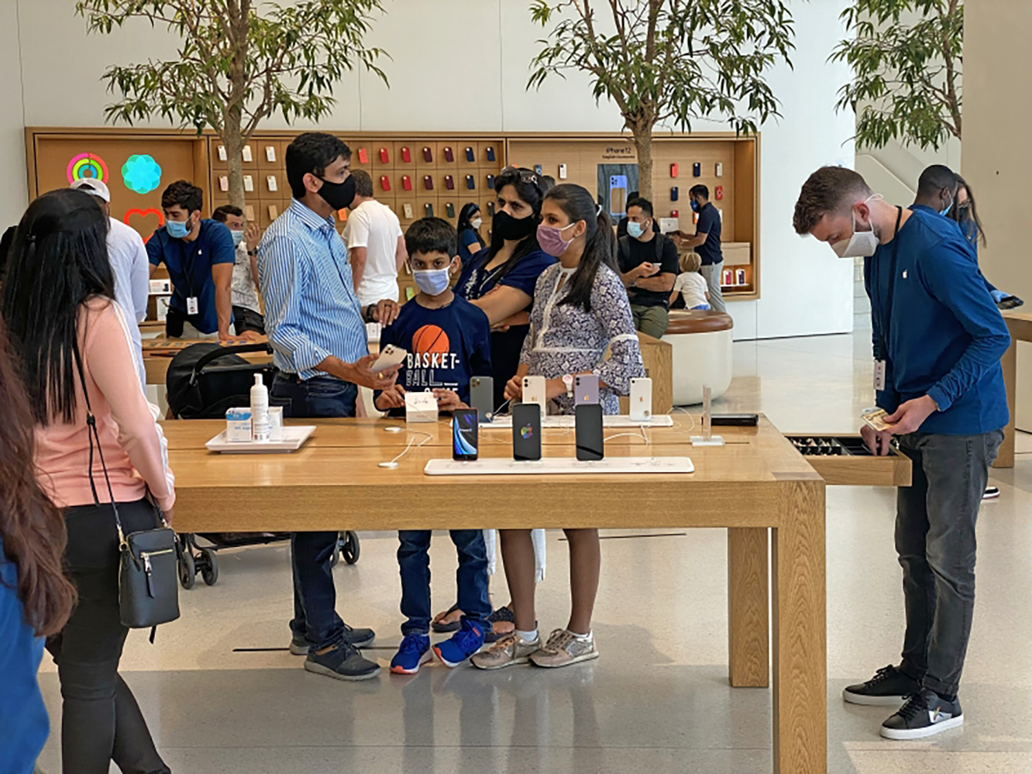 شهدت متاجر «آبل» في دبي مول ومول الإمارات في دبي وياس مول في أبوظبي، أمس، إطلاق هاتفي «آيفون 12» و«آيفون 12 برو»، فيما تميّزت حركة المستهلكين خلال الانتظار في الطابور بالانتظام والانضباط والالتزام بإجراءات التباعد الاجتماعي، وذلك بمساعدة العدد الإضافي من موظفي الأمن الذين جندتهم «آبل» لهذا الإطلاق.