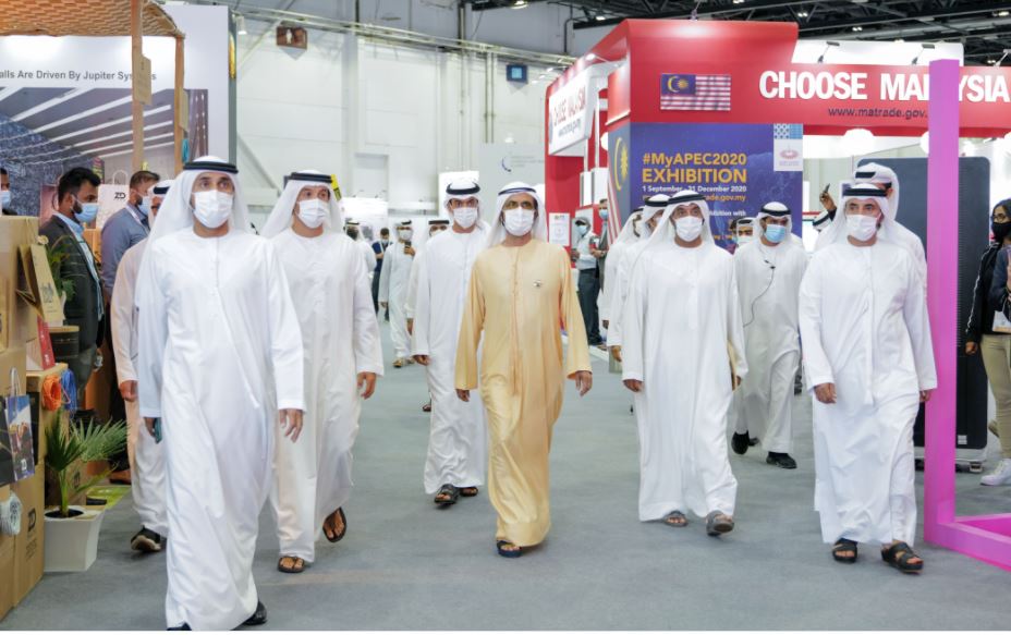 رافق صاحب السمو الشيخ محمد بن راشد آل مكتوم خلال الزيارة سمو الشيخ أحمد بن سعيد آل مكتوم رئيس هيئة دبي للطيران الرئيس الأعلى لمجموعة طيران الإمارات، وسعادة هلال سعيد المري، المدير العام لمركز دبي التجاري العالمي، وسعادة خليفة سعيد سليمان، المدير العام لدائرة التشريفات والضيافة في دبي.