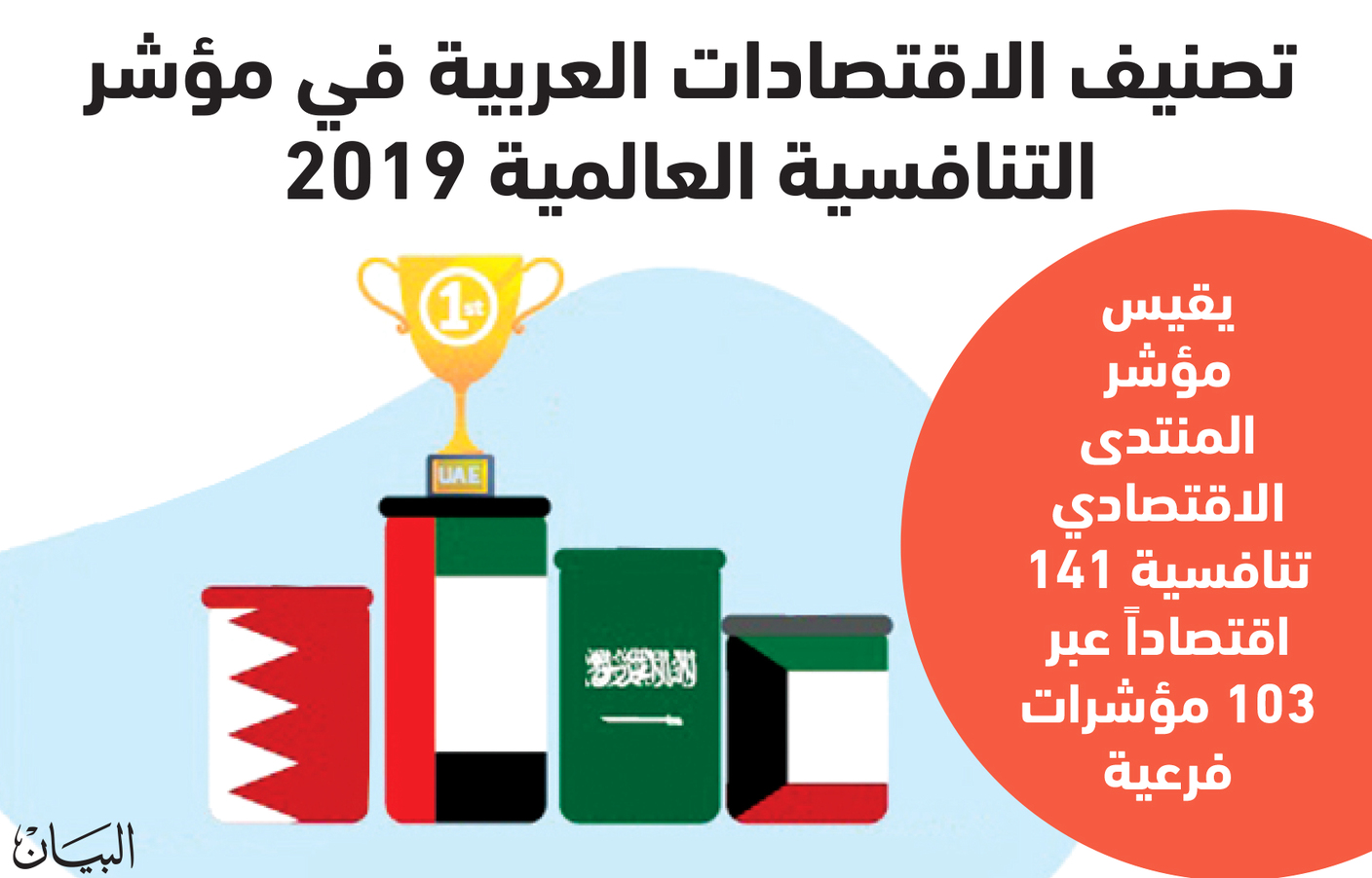 ونوه التقرير بموقع الإمارات في الاقتصاد العالمي، مشيراً إلى أن الاقتصاد المتطور للإمارات، يتجلى بشكل متزايد من خلال مكانتها، باعتبارها أعلى الاقتصادات العربية تصنيفاً في تقرير التنافسية العالمي 2019، محتلة المرتبة 25 من 141 دولة.