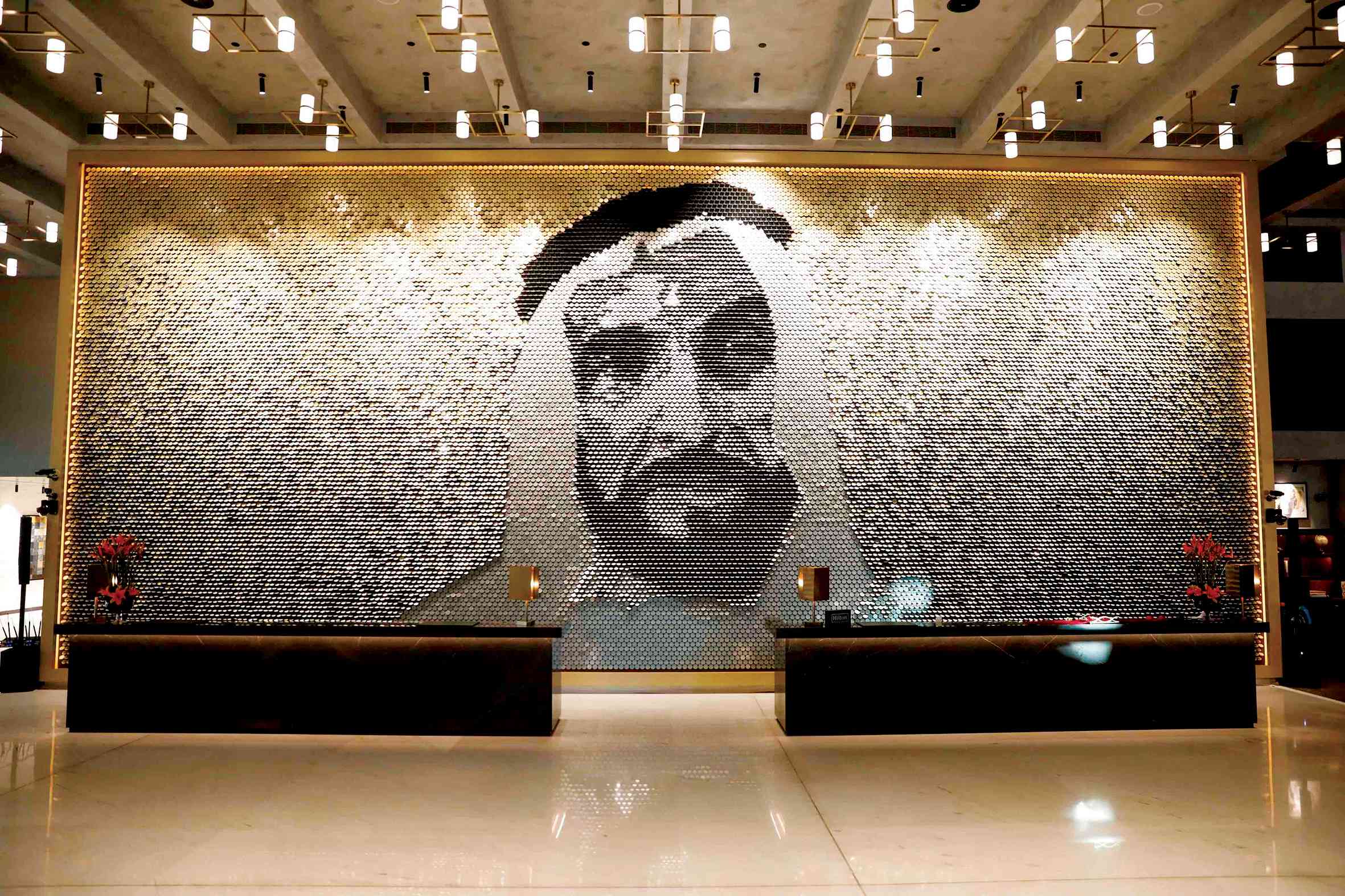 ويتزيّن الفندق ذو الخمس نجوم بجدارية هي الأولى من نوعها للمغفور له الشيخ زايد بن سلطان آل نهيان، وتعتبر هذه الجدارية أول عمل فني من نوعه في الإمارات العربية المتحدة من وحي مفهوم «الأناقة الصناعية»، وهو يحمل توقيع استوديو جايلز ميلر الواقع مقره في لندن، وتمتد التحفة الفنية على ارتفاع 15 متراً في ردهة الاستقبال، وقد تم تصميمها من أكثر من 29 ألف قرصٍ عاكسٍ للضوء وموزعٍ على لوح مسطح من زوايا متنوعة، وقد عمل فريق مختص من الفنانين على تركيب جميع الأقراص على هيكل الدعم المصمم خصيصاً للجدارية خلال ثلاثة أسابيع.