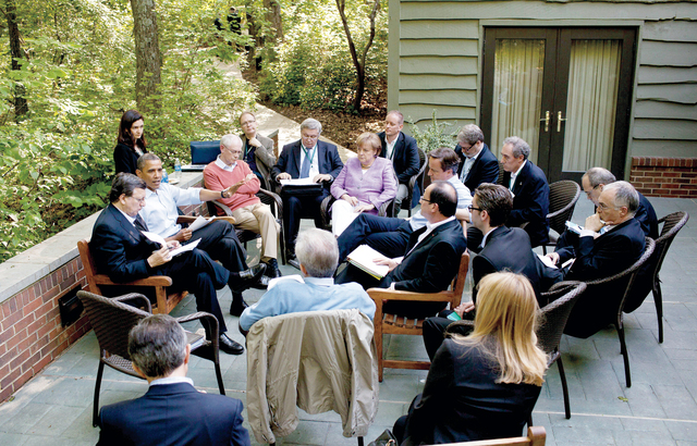 ابدى زعماء العالم مساندتهم لبقاء اليونان داخل منطقة اليورو وتعهدوا بأخذ جميع الاجراءات الضرورية للتصدي للازمة المالية وفي ذات الوقت احياء الاقتصاد العالمي الذي يواجه تهديدا متزايدا جراء ازمة الدين في منطقة اليورو. بينما قال الرئيس الاميركي باراك اوباما في ختام اجتماع القمة الذي استضافه في كامب ديفيد بولاية ماريلاند الاميركية، ان ازمة منطقة اليورو تهدد الاقتصاد العالمي ولكنه رحب بتركيز اوروبا الجديد على الوظائف والنمو كعلاج محتمل.