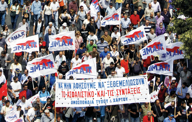 وبسبب سياسة التقشف المفروضة على البلاد والتأخر والخلل في تطبيق الاصلاحات البنيوية، تتوقع اليونان التي تشهد في 2012 عامها الخامس من الانكماش ان يستمر هذا الوضع في 2013. وتشهد اليونان إضرابات ومظاهرات من وقت لآخر احتجاجاً على إجراءات تقشف تتخذها الحكومة في إطار جهودها للحصول على مساعدات إنقاذ جديدة من المؤسسات الأوروبية.