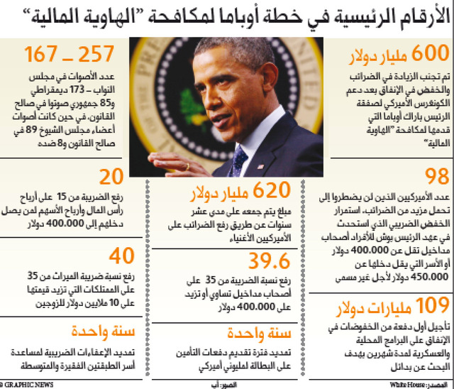 وكان مجــــلس النـواب الأميركي أقــــر في وقت ســابق، مشـــروع قـــانون لتجـــاوز "الهاوية المالية"، بتأييد 257 صوتاً ومعارضة 167، وذلك بعد ساعات من إقراره في مجلس الشيوخ.