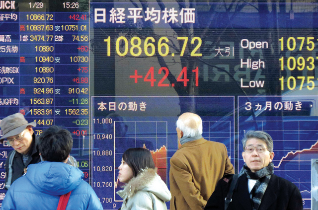 في اليابان تعافى مؤشر نيكاي القياسي لاسهم الشركات اليابانية الكبرى من خسائره الاولية مع ترحيب المستثمرين بتوقعات بان تسجل البنوك اليابانية الكبرى أرباحا أعلى من المتوقع هذا العام وهو ما ساعد على الحد من الاثر السلبي لصعود قيمة الين والذي اثار مبيعات لجني الارباح في اوائل الجلسة. وقفز نيكاي 0.99% إلى 10932.23 نقطة بعد تعافيه من خسائره الاولية. وكان المؤشر القياسي قد اخترق في الجلسة السابقة مستوى 11000 نقطة للمرة الاولى في 32 شهرا. وصعد مؤشر توبكس الاوسع نطاقا 1.17 % إلى 924.23 نقطة. وحول المستثمرون اهتمامهم الان إلى موسم نتائج الشركات اليابانية الذي سينطلق هذا الاسبوع.