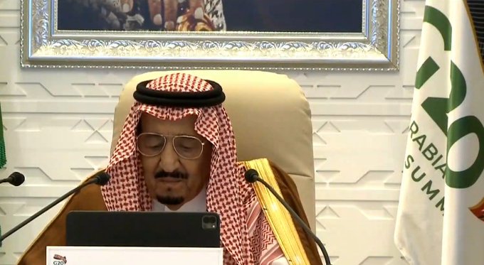 وقال الملك سلمان: إن هدفنا العام هو اغتنام فرص القرن الحادي والعشرين للجميع. وعلى الرغم من أن جائحة كورونا قد دفعتنا إلى إعادة توجيه تركيزنا بشكل سريع للتصدي لآثارها، إلا أن المحاور الرئيسية التي وضعناها تحت هذا الهدف العام ـ وهي تمكين الإنسان، والحفاظ على كوكب الأرض، وتشكيل آفاقٍ جديدة ـ لا تزال أساسية لتجاوز هذا التحدي العالمي وتشكيل مستقبلٍ أفضل لشعوبنا، وعلينا في المستقبل القريب أن نعالج مواطن الضعف التي ظهرت في هذه الأزمة، مع العمل على حماية الأرواح وسبل العيش.