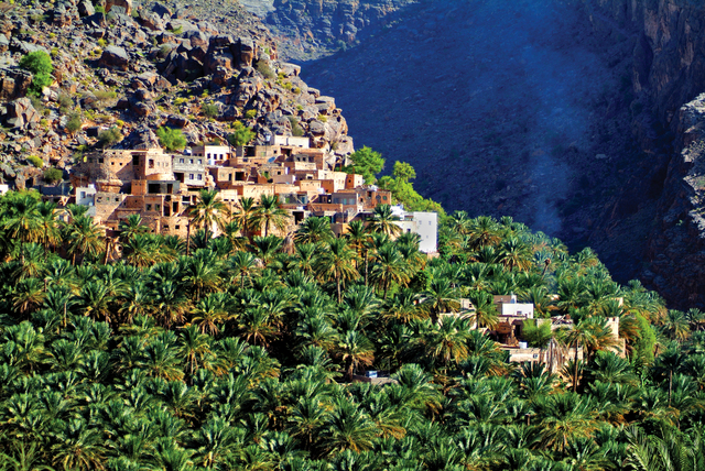 ويمكن للزائر عبر هذا المسار الوصول إلى الفلج وبرك المياه بالقرية بعد مسافة قصيرة . ويمكنك المشي محاذيا للفلج نزولا إلى القرية ، حيث توجد أشجار النخيل المحاطة بجبال شديدة الإنحدار فيما تمنحك زيارة القرية الإطلاع على طبيعة الحياة في القرى العمانية القديمة .