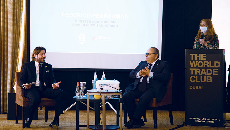 وقال ماورو ماياني؛ سفير سان مارينو لدى دولة الإمارات ومفوضها العام لمعرض إكسبو 2020: «نحن حريصون على تقديم بلادنا كوجهة جاذبة لمختلف أنواع المسافرين، حيث يمكن للسياح الاستمتاع بجولات السياحة الإيطالية الكلاسيكية، وحضور الفعاليات الثقافية والمهرجانات التي ننظمها بشكل رئيسي خلال أوقات الصيف، هذا مع اهتمامنا أيضاً بقطاع سياحة حفلات الزفاف.