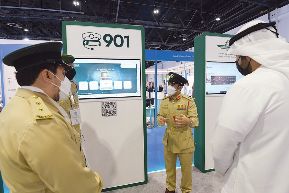 عرضت القيادة العامة لشرطة دبي أمام المشاركين في فعاليات «معرض المطارات 2021» الخدمات، التي يقدمها مركز الاتصال 901 المخصص للحالات غير الطارئة، والرد على استفسارات المتعاملين، وتقديم الخدمات المتعددة لهم في أسرع وقت ممكن، عبر قنوات هاتفية مباشرة وتطبيقات شرطية ذكية، وخدمات الدردشة، وذلك تحقيقات لتوجيهات القيادة العامة لشرطة دبي في العمل على إسعاد أفراد المجتمع، وجعل دبي «المدينة الأكثر أمناً».