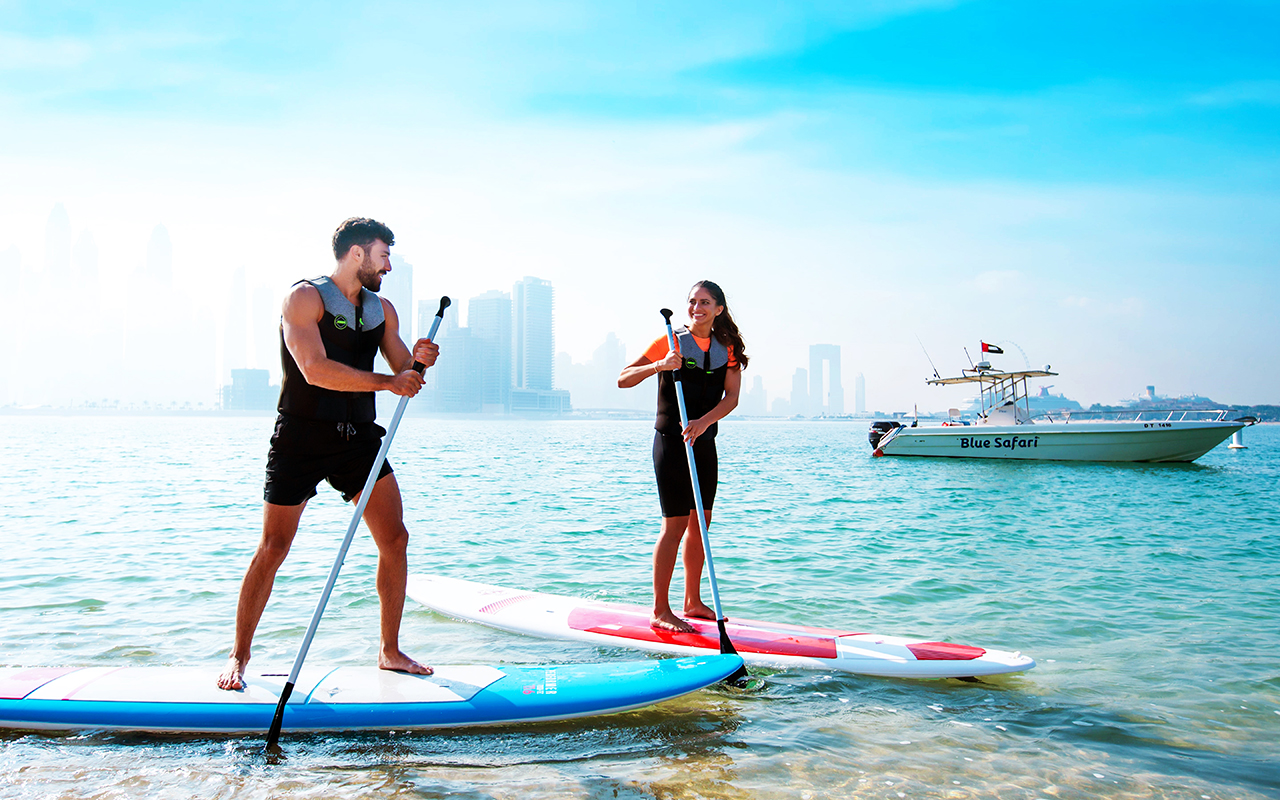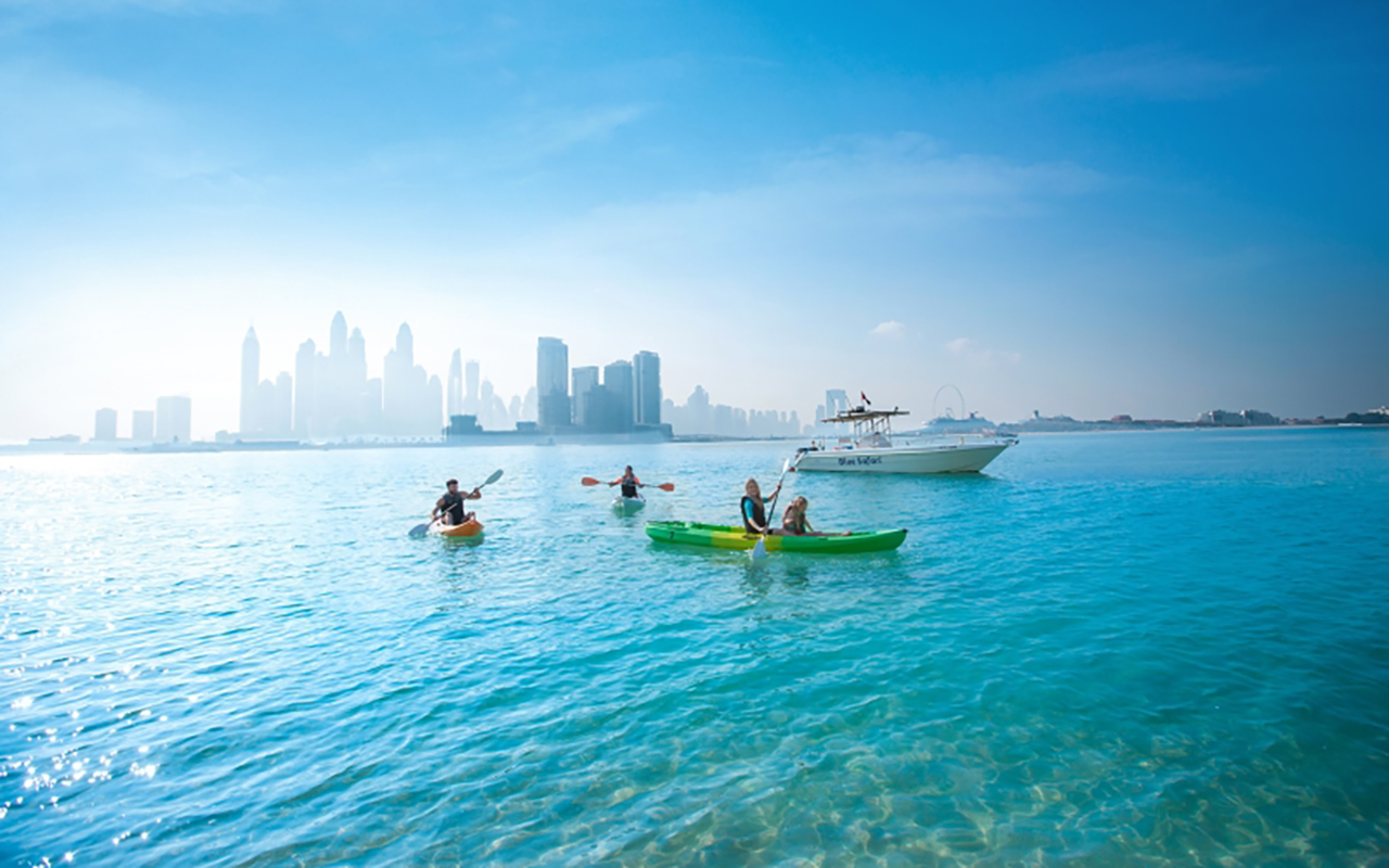 وأضاف الصلبي: «نوفر باقة من الخدمات والرياضات المائية في نخلة جميرا، مثل تأجير المعدات والتدريب على الرياضات المائية، والإبحار وركوب الأمواج، وتعد جولات قوارب الكاياك وألواح التجديف من الخيارات التي يفضلها زوار دبي، للاستمتاع بأشهر معالمها».