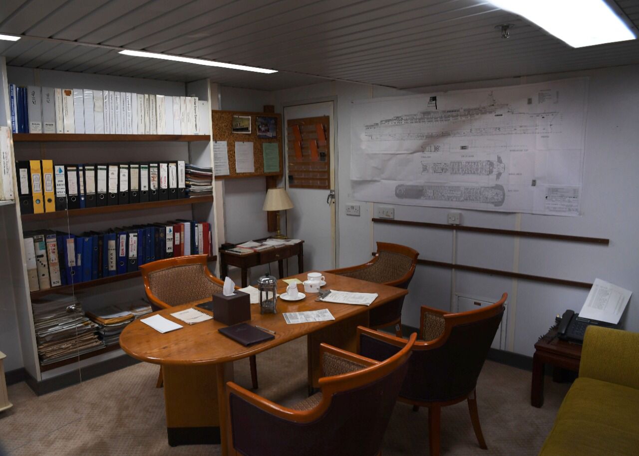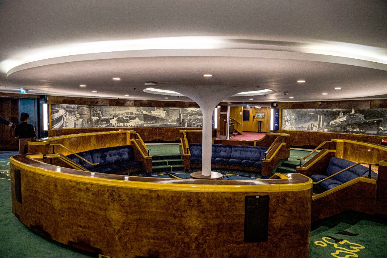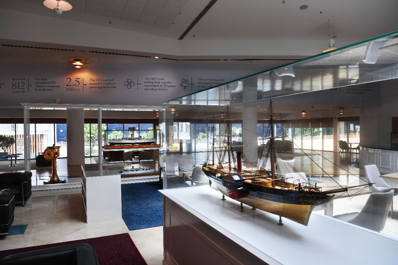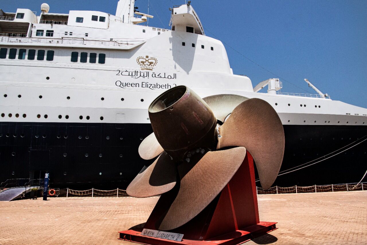 بدأت رحلتنا الغامرة داخل السفينة الأسطورية مع مسؤولي السفينة، فمنذ أن وطأت أقدامنا المرفأ تسللت إلينا رائحة البلوط الخشبي القديم، تتهادى بجمالياتها الفريدة على صفحة مياه دبي ، بعد ترميمها بنحو 100 مليون دولار من أجل إعادة مجدها السابق والحفاظ علي التصميم الداخلي من قطع الأثاث القديمة ولوحاتها الشهيرة، تستشعر في كينونتك عبق التاريخ والزمان لتلك السفينة الملكية، والتي قاومت صخب الموج لعقود طويلة، لتغدو كأنها قطعة مليئة بأسرار البحار وعوالمه.