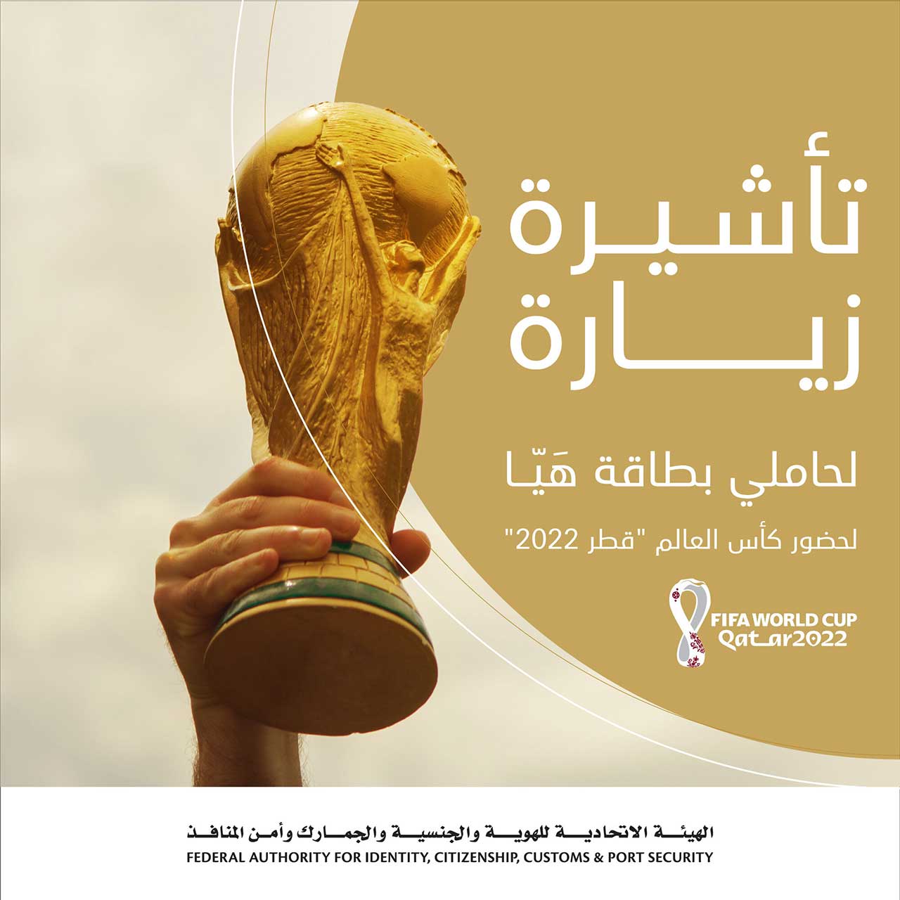 وجددت الهيئة ترحيبها بزوار الحدث القادمين عبر دولة الإمارات من مختلف دول العالم لحضور فعاليات وأنشطة بطولة كأس العالم لكرة القدم FIFA قطر 2022 وذلك تعزيزًا لآفاق التعاون وانسجامًا مع الروابط المشتركة مع الأشقاء في دولة قطر وكافة دول مجلس التعاون لدول الخليج العربية.