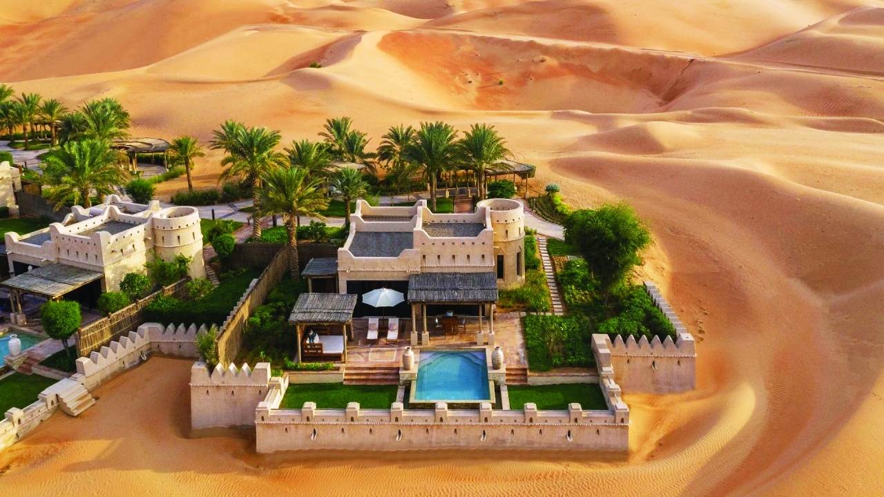 يثير منتجع قصر السراب، الذي تم بناؤه بين الكثبان الرملية في قلب صحراء ليوا بأبوظبي على أطراف الربع الخالي، دهشة زائريه من الدولة وخارجها، حيث يحاكي في تصميمه قلاع الرمال.
