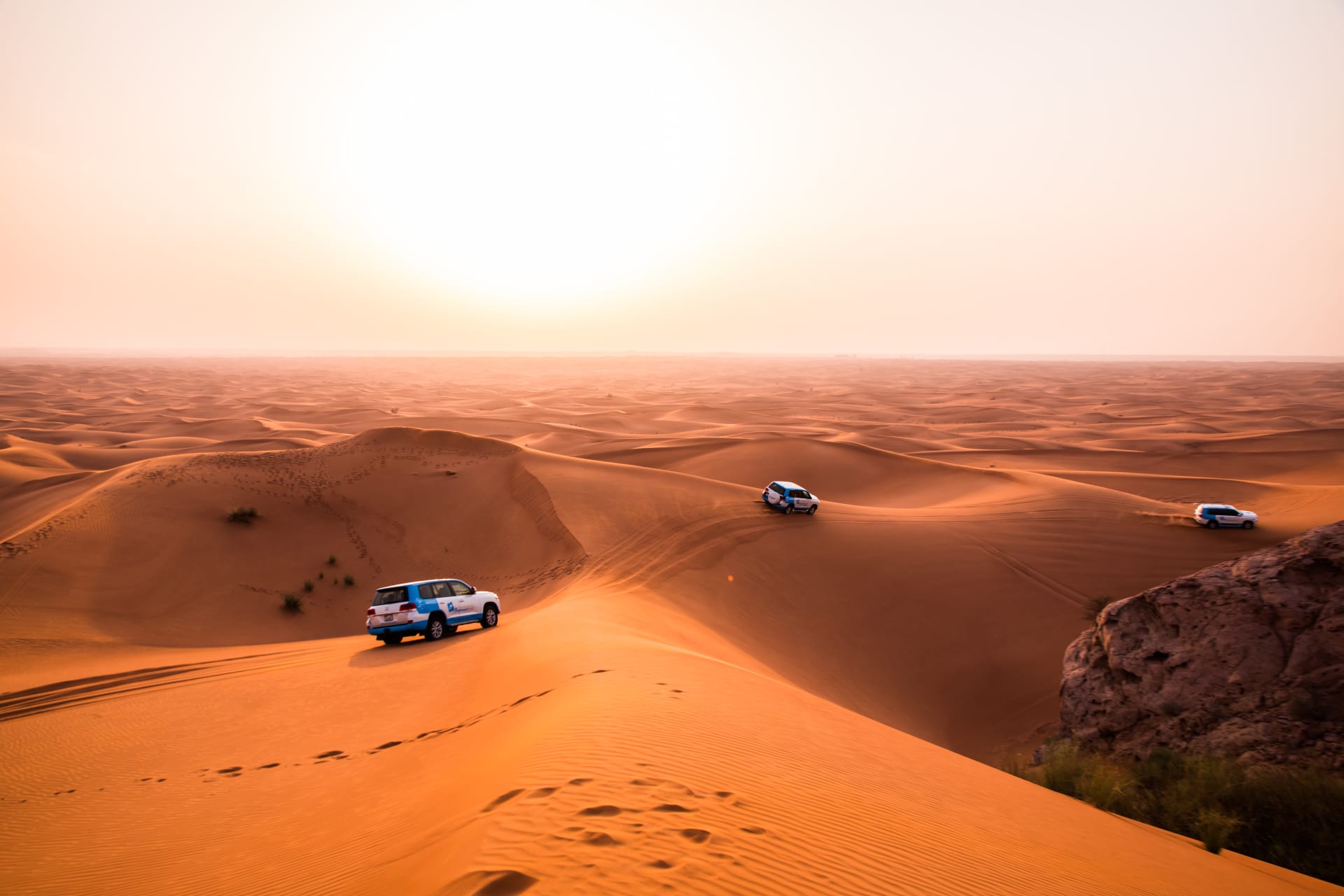 وتُعتبر الصحراء الممتدة في مختلف أنحاء دولة الإمارات بكثبانها الرملية المرتفعة، وأوديتها الرملية مترامية الأطراف، متنفساً لعشاق المغامرات والتشويق، حيث تشكّل القيادة على الكثبان الرملية طريقة مميزة لاكتشاف الصحراء الشاسعة، والاستمتاع بثروات طبيعية استثنائية.