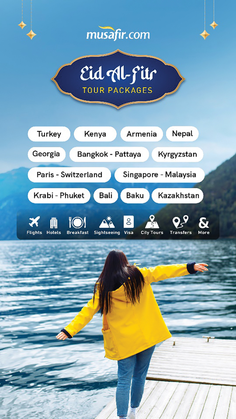 ويمكن للمقيمين في دولة الإمارات استكشاف وجهات وثقافات مميزة وجديدة والاستمتاع بتجارب لا تنسى من خلال حجز رحلات عطلاتهم عن طريق منصة مسافر دوت كوم، حيث توفر مجموعة من الباقات المميزة خلال العيد، التي تتضمن أفضل الرحلات الجوية والفنادق الفاخرة والنقل من وإلى المطار ووجبة الفطور وتسهيلات إصدار التأشيرات العالمية وغيرها من الخدمات المتميزة.