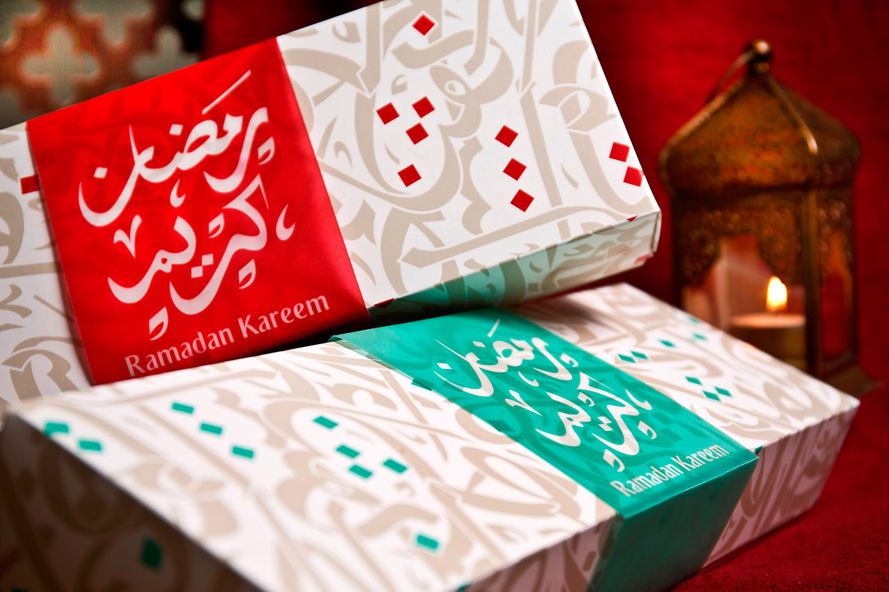 وتقدم طيران الإمارات علب الإفطار كمقدمة لخدمة الوجبات الساخنة المعتادة، ويجري تحديث قوائم الطعام على أساس أسبوعي لضمان تجربة طعام تعد الأفضل في فئتها خلال الشهر الكريم. وتسلّم علب الإفطار للركاب على الرحلات إلى وجهات محددة خلال الأوقات التي تتزامن مع موعد الإفطار، وعلى الرحلات الجوية من وإلى دول مجلس التعاون الخليجي، وكذلك الرحلات التي تخدم مجموعات العمرة إلى جدة والمدينة المنورة خلال الشهر الكريم. ويمكن لكل معتمر في رحلات العودة من مطارات في المملكة العربية السعودية اصطحاب عبوة واحدة من مياه زمزم سعة 5 لترات.