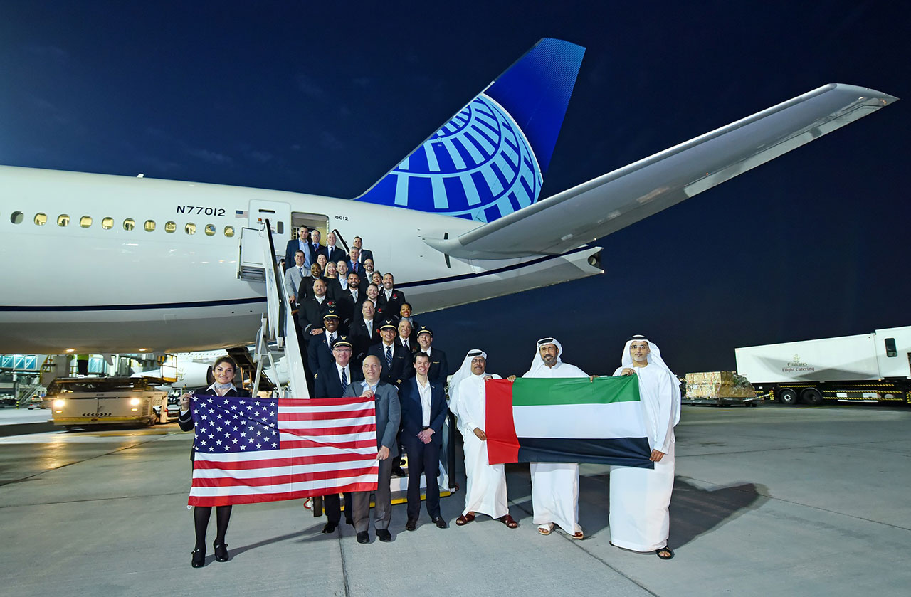 وتعد "يونايتد إيرلاينز" شركة الطيران الأمريكية الأولى التي تشغّل رحلات مباشرة بين دبي والولايات المتحدة دون توقف، فضلاً عن تشغيلها العديد من الرحلات إلى وجهات أخرى في منطقة الشرق الأوسط.