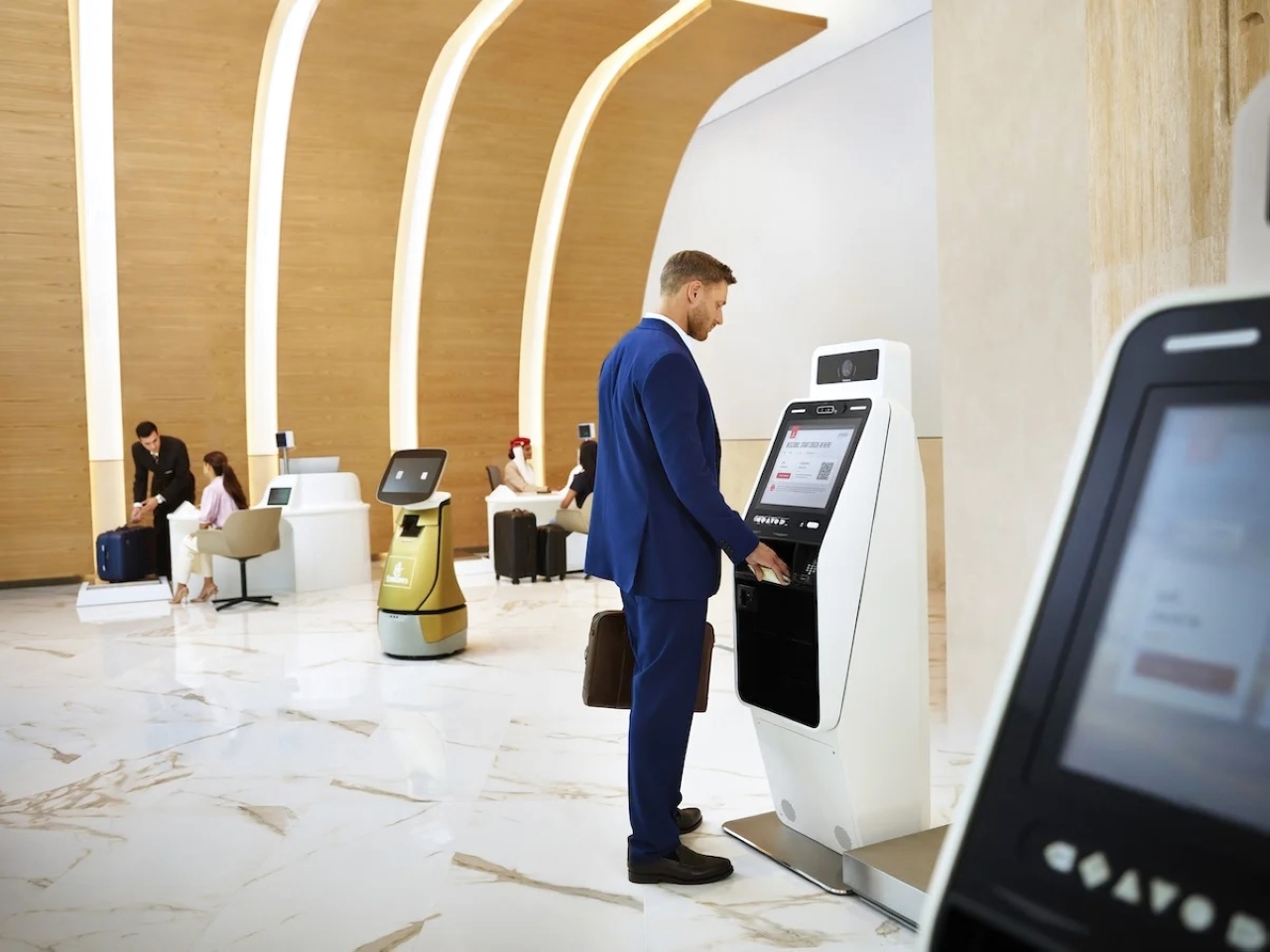 وطلب الوجبة مسبقاً في درجة الأعمال، وحجز خدمة السيارة مع سائق، وحتى الاختيار المسبق للأفلام والتخطيط لها للمشاهدة عبر نظام الترفيه الجوي ice. ويمكن للعملاء أيضاً تسجيل الوصول عبر الموقع Emirates.com. ويتاح للعملاء إنجاز إجراءات السفر عبر الموقع الإلكتروني أو عبر التطبيق قبل 48 ساعة من موعد مغادرة الرحلة.