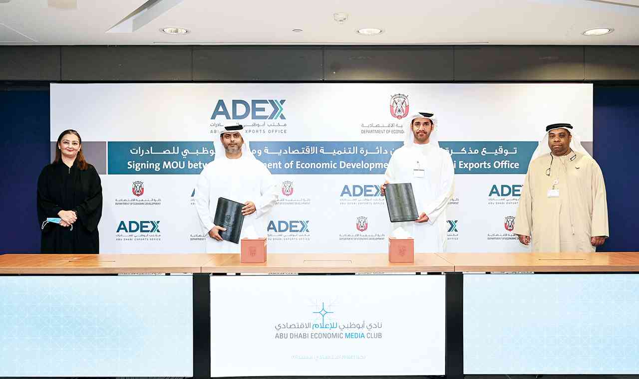 وقعت دائرة التنمية الاقتصادية أبوظبي، ممثلة بمكتب تنمية الصناعة، التابع لها، اتفاقية تعاون مشترك مع مكتب أبوظبي للصادرات «أدكس-ADEX»، بهدف تعزيز الجهود المشتركة لتدعيم تنافسية الشركات المحلية بإمارة أبوظبي في الأسواق العالمية، للمساهمة في نمو قطاع الصادرات، وزيادة مساهمتها في الناتج المحلي الإجمالي للإمارة.