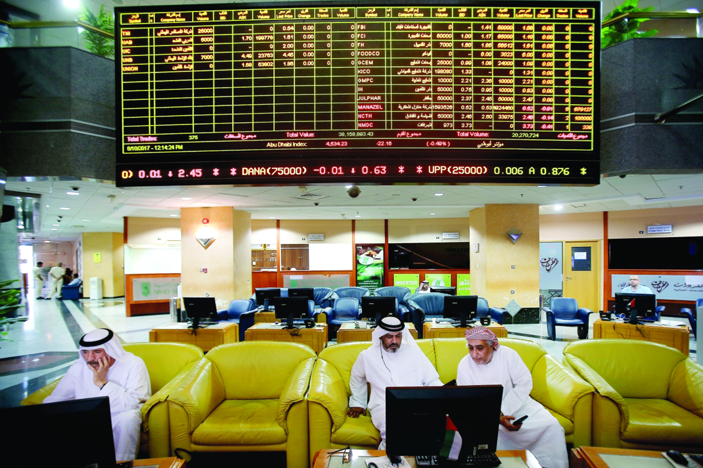 وأيضاً ارتفعت أرباح «سوق دبي المالي» 14.3% إلى 138 مليون درهم، ونمت أرباح «الفجيرة الوطنية للتأمين» إلى 36.9 مليون درهم، وزادت أرباح الوطنية للتكافل «وطنية» إلى 18.3 مليون درهم، وصعدت أرباح «شعاع كابيتال» 166% إلى 125 مليون درهم، فيما قلصت «الخليج الاستثمارية» خسائرها إلى 30.34 مليون درهم، وتراجعت خسائر أبوظبي الوطنية لمواد البناء «بلدكو» إلى 7.938 ملايين درهم.