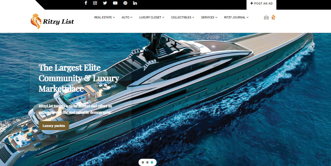 وأشار إلي أن «ريتزي ليست» Ritzylist.com يضم أكثر من 320 فئة مختلفة من مختلف الماركات العالمية تشمل العقارات الفاخرة والسيارات الفارهة واليخوت والقوارب الفخمة والمجوهرات والساعات والأحذية والحقائب الثمينة، وكذلك يضم هناك أقساماً للعطور والهدايا، كما يضم الموقع أركاناً للتحف النادرة والأثاث الراقي والانتيكات الفريدة، إضافة إلي قسم خاص للصقور والخيول.