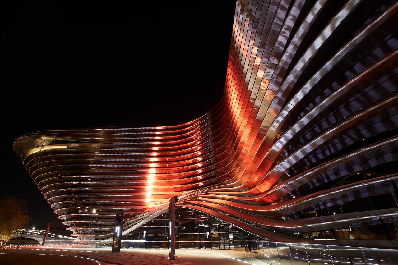 وتم تصميم الجناح من قبل شركة " فوستر وشركائه"، ويضم أكبر مصعد في العالم للأشخاص، والذي يستطيع استيعاب أكثر من 160 شخصا في وقت واحد. وسيكون جزء من الجناح تحت الأرض وسيضم مضمارا جزء منه في الهواء الطلق بطول 340 مترا لكي تستطيع مشاهدة وسائل التنقل المتقدمة.