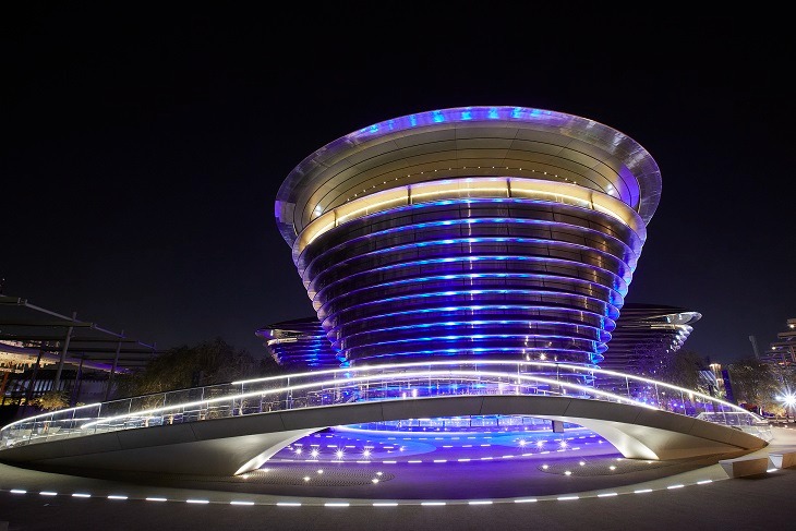 أظهرت صور حديثة تنشر للمرة الأولى لجناح التنقل "ألِف" في إكسبو 2020 دبي تألق مبنى الجناح بتصميمه المميز الذي يجسد الحركة بمفهومها العام والشامل بما فيها حركة الأفراد والبضائع والأفكار.
