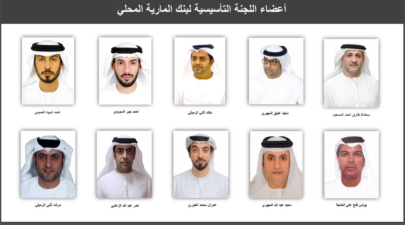 وأضاف طارق المسعود قائلاً "يتمتع أعضاء اللجنة التأسيسية بخبرات متعددة في شتى قطاعات الاقتصاد المحلي لإثراء صنع القرار في مجلس الإدارة بالإضافة إلى اشتراك كل عضو في الهدف الأمثل وهو تقديم بنك يخدم المجتمع الإماراتي من خلال كسب ثقة العملاء وولاء الموظفين والعمل بأمانة وإخلاص واستخدام التقنيات الذكية المبتكرة."