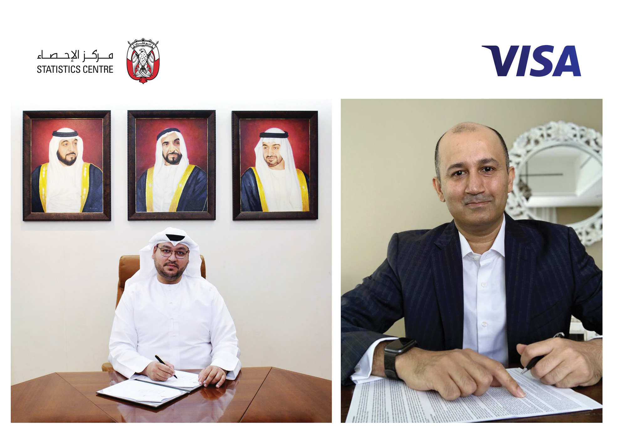 وقد وقَّع الاتفاقية كلٌّ من أحمد محمود فكري، مدير عام مركز الإحصاء – أبوظبي وشهباز خان، مدير عام شركة فيزا في دولة الإمارات، بحضور ممثلي الجهتين، وذلك عبر قنوات الاتصال المرئي.