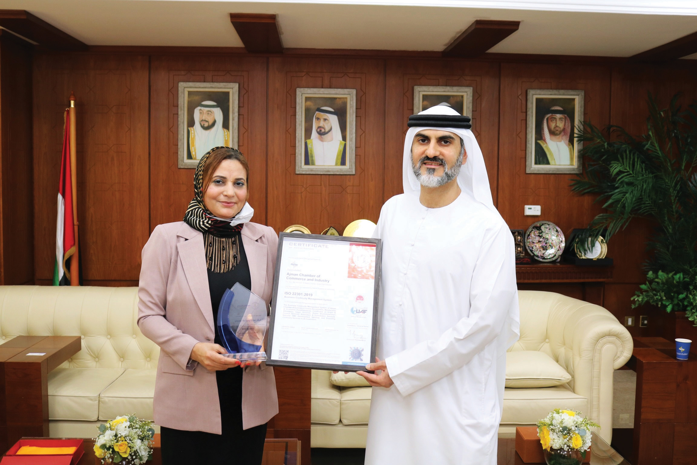 وتسلم سالم السويدي، مدير عام غرفة عجمان، شهادة «ISO22301» بحضور المديرين التنفيذيين وفريق عمل تطبيق نظام استمرارية الأعمال، حيث قدمت الشهادة الدكتورة كريمة عبد المنعم، المدير العام لمعهد التميز المستدام، نيابة عن شركة غابرييل ريجسترار المانحة لشهادات الأيزو، وذلك في مقر غرفة عجمان.