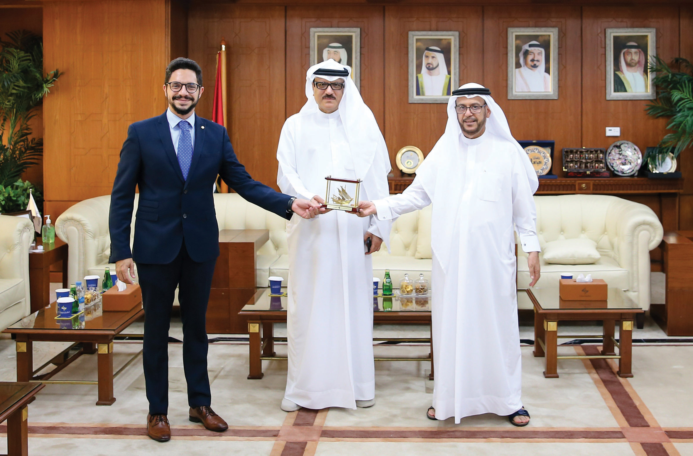 ضم وفد الغرفة العربية البرازيلية رافايل سوليماو رئيس المكتب الدولي للشرق الأوسط وشمال أفريقيا، وشاهين علي شاهين المستشار الإقليمي لدول مجلس التعاون والعراق واليمن، وحضر اللقاء بمقر غرفة عجمان، ناصر الظفري المدير التنفيذي لقطاع الاتصال ودعم الأعضاء.