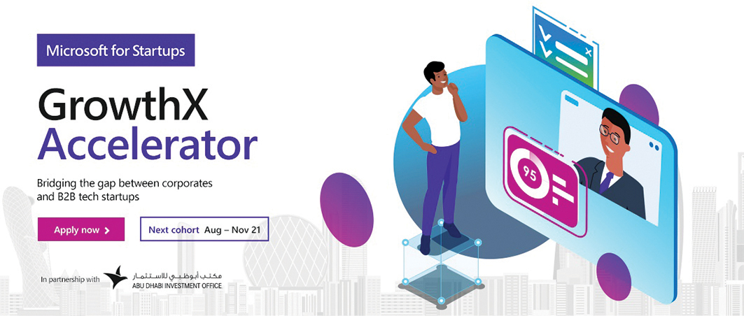 ويعتبر برنامج مايكروسوفت «GrowthX Accelerator» الذي تم الإعلان عنه في يناير وافتتح أبوابه للتسجيل في مايو بمثابة دفعة كبيرة لمنظومة الشركات الناشئة في دولة الإمارات، وهو جزء من شراكة استراتيجية أكبر بين كل من مايكروسوفت ومكتب أبوظبي للاستثمار تهدف إلى تسريع فرص النمو في الإمارة أمام الشركات الناشئة.