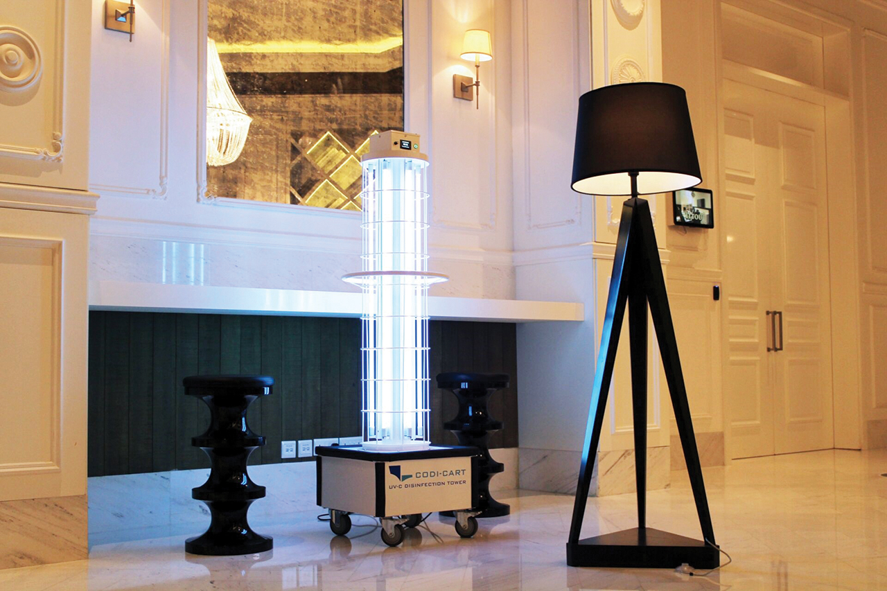 ويعمل النظام على تعقيم الهواء والأسطح المحيطة في نطاق 7 أمتار بشكل سريع وفعّال، باستخدام 6 أضواء قوية تعمل بتقنية الأشعة فوق البنفسجية. ويهدف النظام إلى توفير طبقة إضافية للحماية من البكتيريا والجراثيم والفيروسات المُعدية. ويأتي مُزوداً بأربعة مستشعرات حركة وشاشة LCD ومؤقت قابل للتعديل، وسيتم تشغيله في غرف الضيوف وصالات الفندق وممراته والمناطق التي تشهد كثافة عالية.