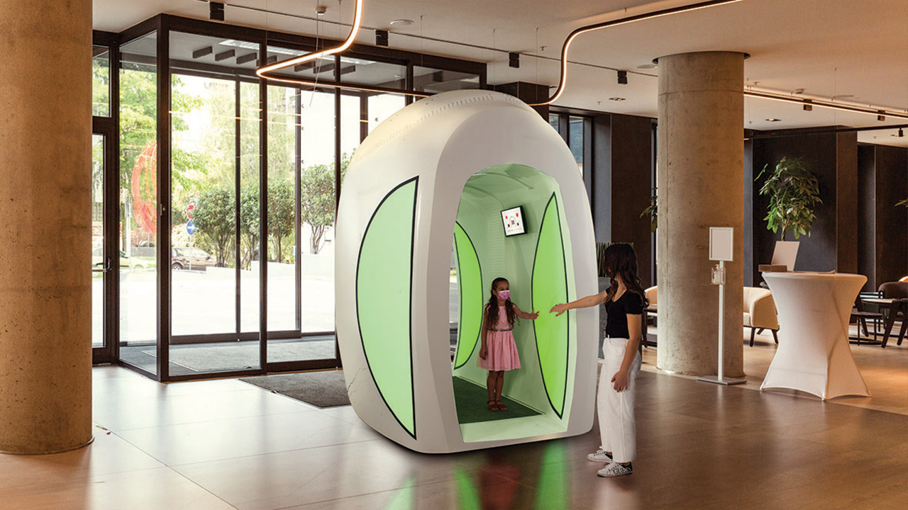 الخطوة الثانية أثناء العبور من البوابة، حيث تخلق تقنية التعقيم الفوري مجالاً مكثفًا من أيونات الهواء المشحونة والموجودة بشكل طبيعي. الخطوة الثالثة عندما تلتصق هذه الأيونات الخالية من المواد الكيميائية بالفيروسات والبكتيريا، ما يثبط نشاطها ويجعلها ثقيلة جداً لا يستطيع الهواء حملها فتسقط على الأرض. كل هذه العملية تحدث في اللحظة نفسها التي يعبر فيها الشخص البوابة، وبالتالي تطهّر البيئة المحيطة وتوفّر هواءً نقياً.
