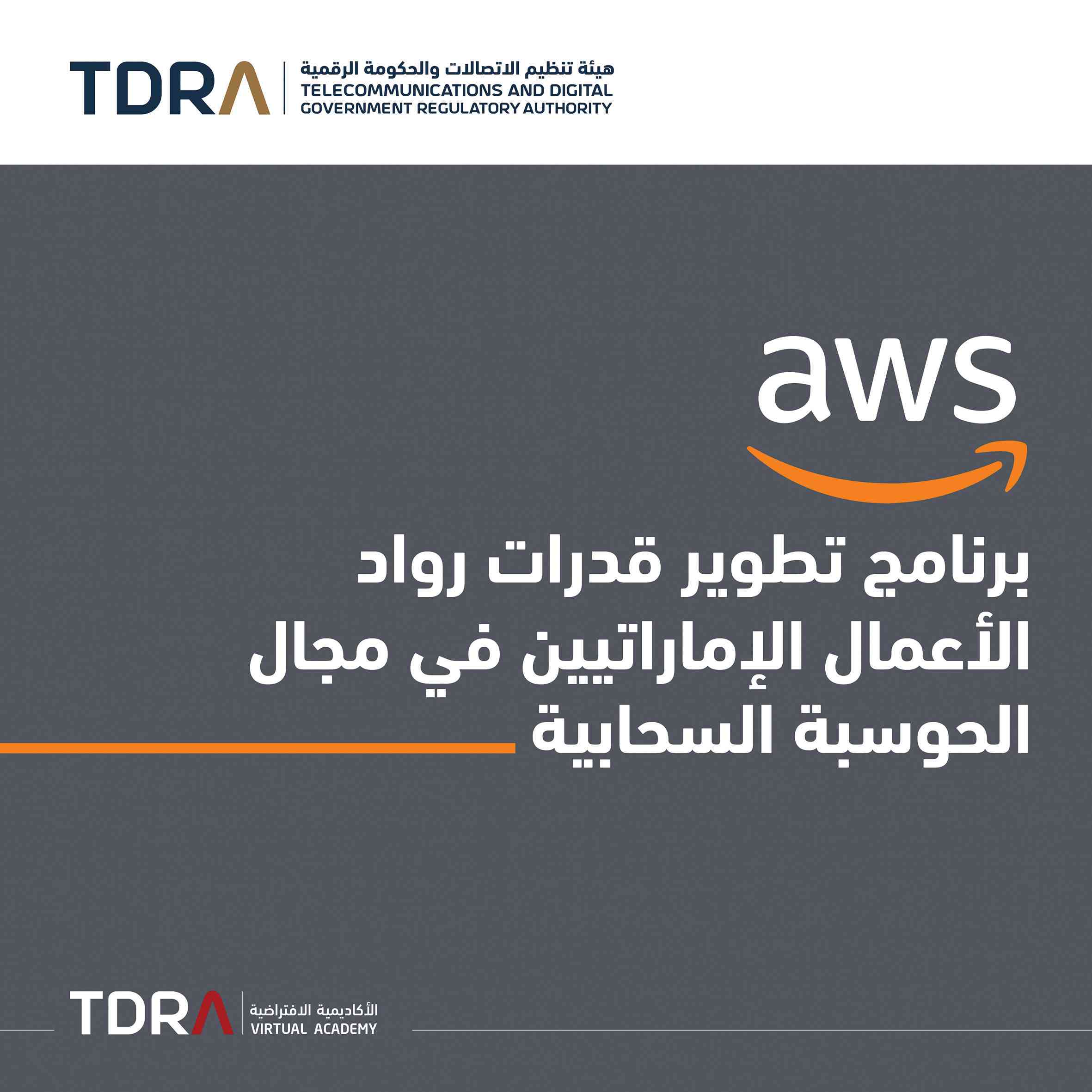 أطلقت أكاديمية هيئة تنظيم الاتصالات والحكومة الرقمية الافتراضية برنامج تطوير قدرات رواد الأعمال الإماراتيين في مجال الحوسبة السحابية، بالتعاون مع شركة «أمازون ويب سيرفيسز»، ويهدف البرنامج الجديد إلى إعداد الموارد البشرية المواطنة، ودعم رواد الأعمال في مجال الحوسبة السحابية.