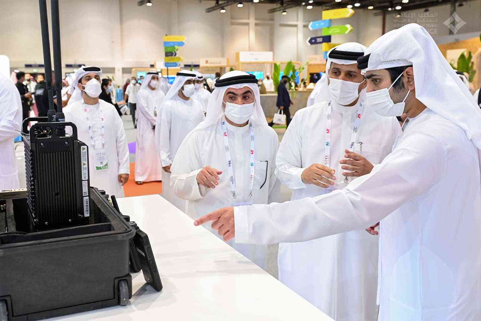 كما توقف سموه عند منصة مؤسسة الاتصالات المتخصصة "نداء" حيث تعرّف على ما تقدمه المؤسسة من أحدث التقنيات المخصصة للمهمات الطارئة والمُستخدمة في مجالات السلامة العامة وتطوير المدن الذكية، وأحدث الحلول والتطبيقات والأجهزة العاملة على شبكتها للجيل الرابع والتي تُعد من أبرز البنى الأساسية في قطاع تكنولوجيا المعلومات والاتصالات؛ فضلاً على أهميتها في دفع مسيرة التحوّل الرقمي في دبي والإمارات وخططها لاعتماد تقنيات الثورة الصناعية الرابعة.