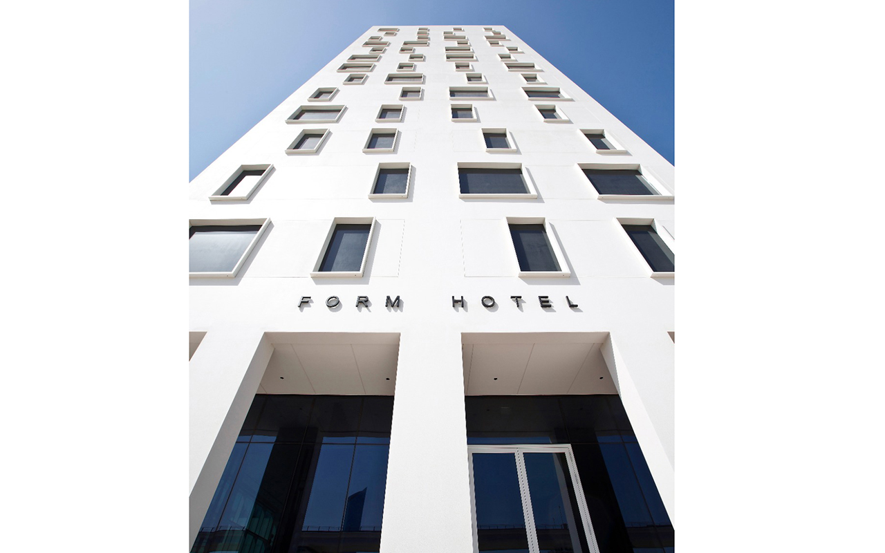تتماشى بنية فندق فورم بأفق دبي إذ إنها تتفاخر بواجهتها البيضاء المطلة بنوافذ غير منتظمة الأحجام والأشكال من الخارج، والتي تم تركيبها من أرض الغرفة حتى سقفها لتعرض منظراً خلاباً للمدينة متكاملاً مع تصميم الغرفة.