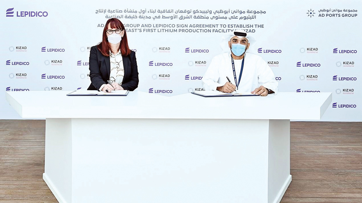 أعلنت مدينة خليفة الصناعية، التابعة لقطاع المدن الصناعية والمنطقة الحرة ضمن مجموعة موانئ أبوظبي، توقيع اتفاقية مدتها 25 عاماً مع «ليبيديكو»، الشركة العالمية المتخصصة في التنقيب عن الليثيوم وتطويره، تنص على بناء منشأة صناعية لإنتاج الليثيوم تعد الأولى من نوعها في منطقة الشرق الأوسط وباستثمار يبلغ 348 مليون درهم (95 مليون دولار).
