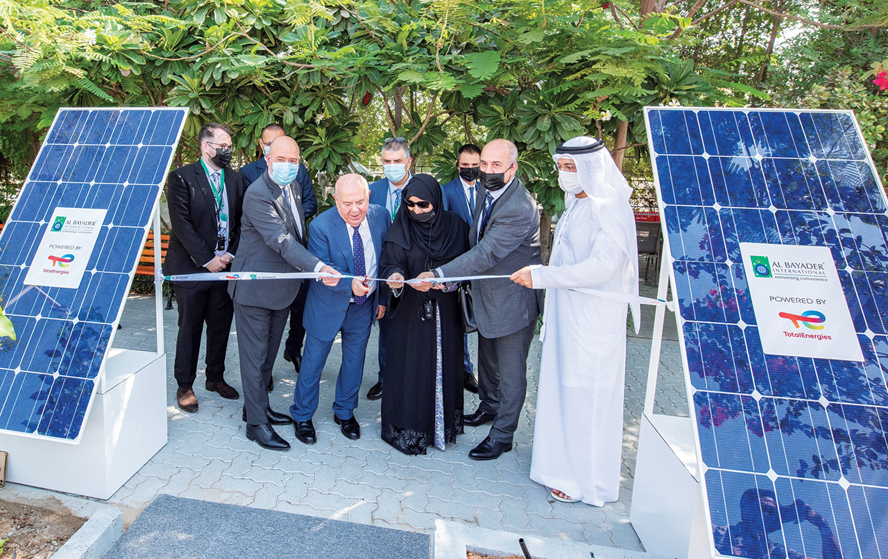 وخلال احتفال خاص، دشنت حبيبة المرعشي، العضو المؤسس ورئيس مجموعة عمل الإمارات للبيئة منظومة الطاقة الشمسية الجديدة بحضور نضال حداد، المؤسس والرئيس التنفيذي لشركة «البيادر انترناشيونال»؛ وجميل حداد رئيس مجلس إدارة الشركة؛ والياس قسيس رئيس شركة توتال في الإمارات ومدير توتال للطاقة في الإمارات؛ وعبد الله بن دميثان المدير التنفيذي والمدير العام لموانئ دبي العالمية - إقليم الإمارات وجافزا.