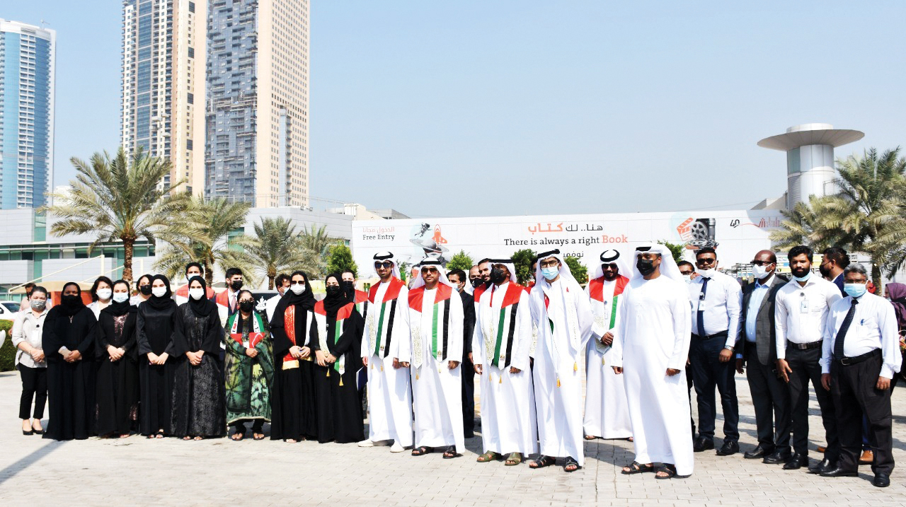 جاء ذلك خلال الاحتفال الذي نظمه مركز إكسبو الشارقة، أمس، حيث تم رفع علم دولة الإمارات مع عزف السلام الوطني في لحظات مليئة بالفخر والاعتزاز.