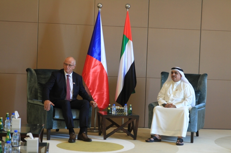 جاء ذلك خلال لقاء محمد النعيمي، بيري سلافيك سفير التشيك لدى الدولة ووفد من رجال الأعمال والمستثمرين المرافق له بمقر غرفة التجارة. حضر اللقاء يوسف إسماعيل رئيس مؤسسة سعود بن صقر لتنمية مشاريع الشباب، والدكتورة عائشة القطامي عضو مجلس إدارة الغرفة ومحمد حسن السبب مدير عام الغرفة بالوكالة وعدد من مسؤوليها.