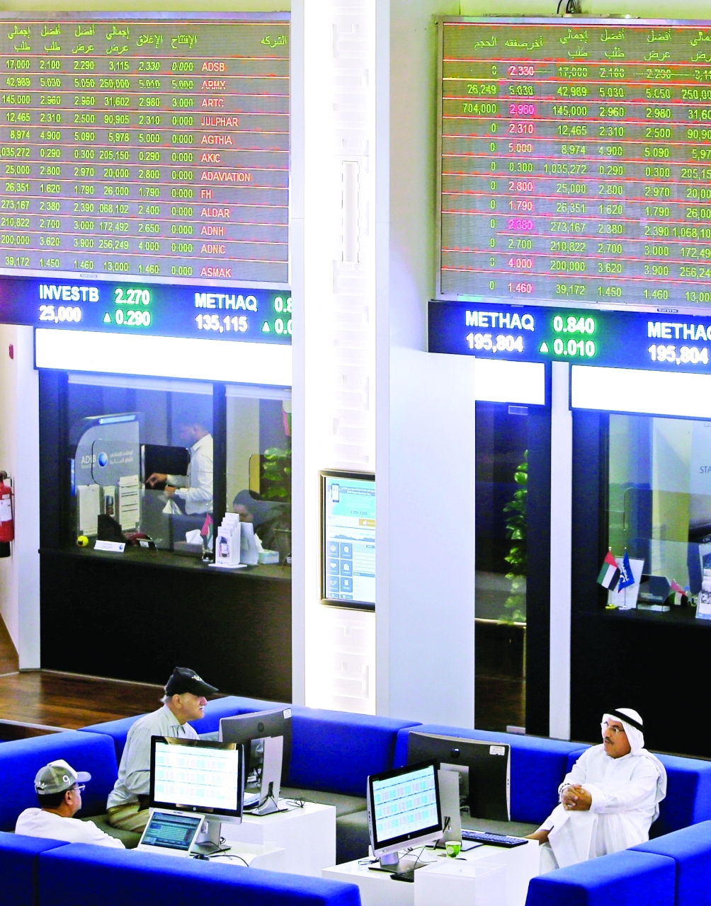 واستقطبت الأسهم سيولة بنحو 2.45 مليار درهم، منها 1.62 مليار درهم في أبوظبي و831.5 مليون درهم في دبي. وجرى تداول 856.2 مليون سهم، موزعة بنحو 312.8 مليوناً في أبوظبي و543.3 مليوناً في دبي، عبر تنفيذ 17.8 ألف صفقة.